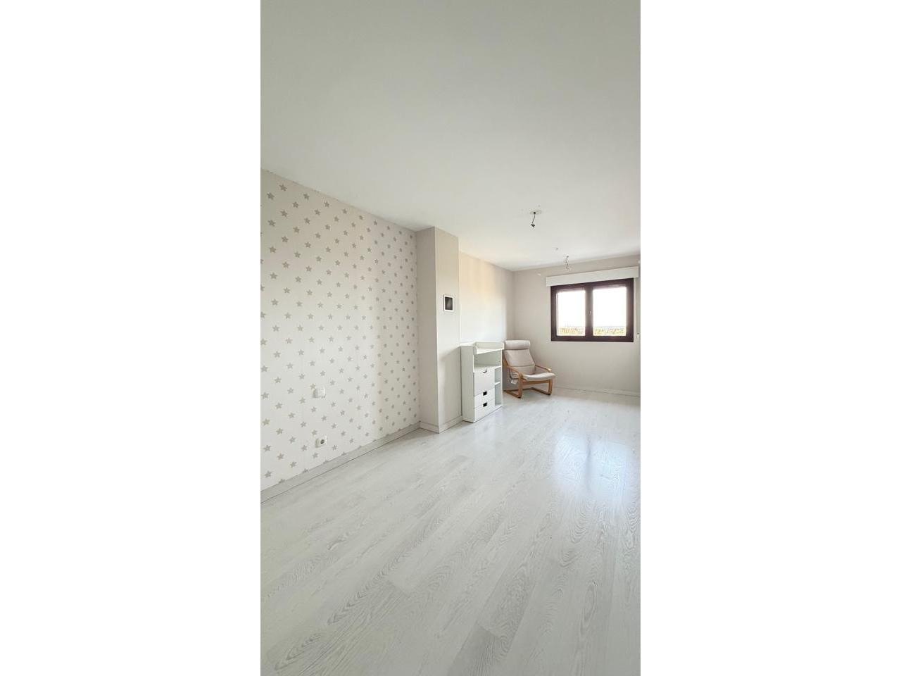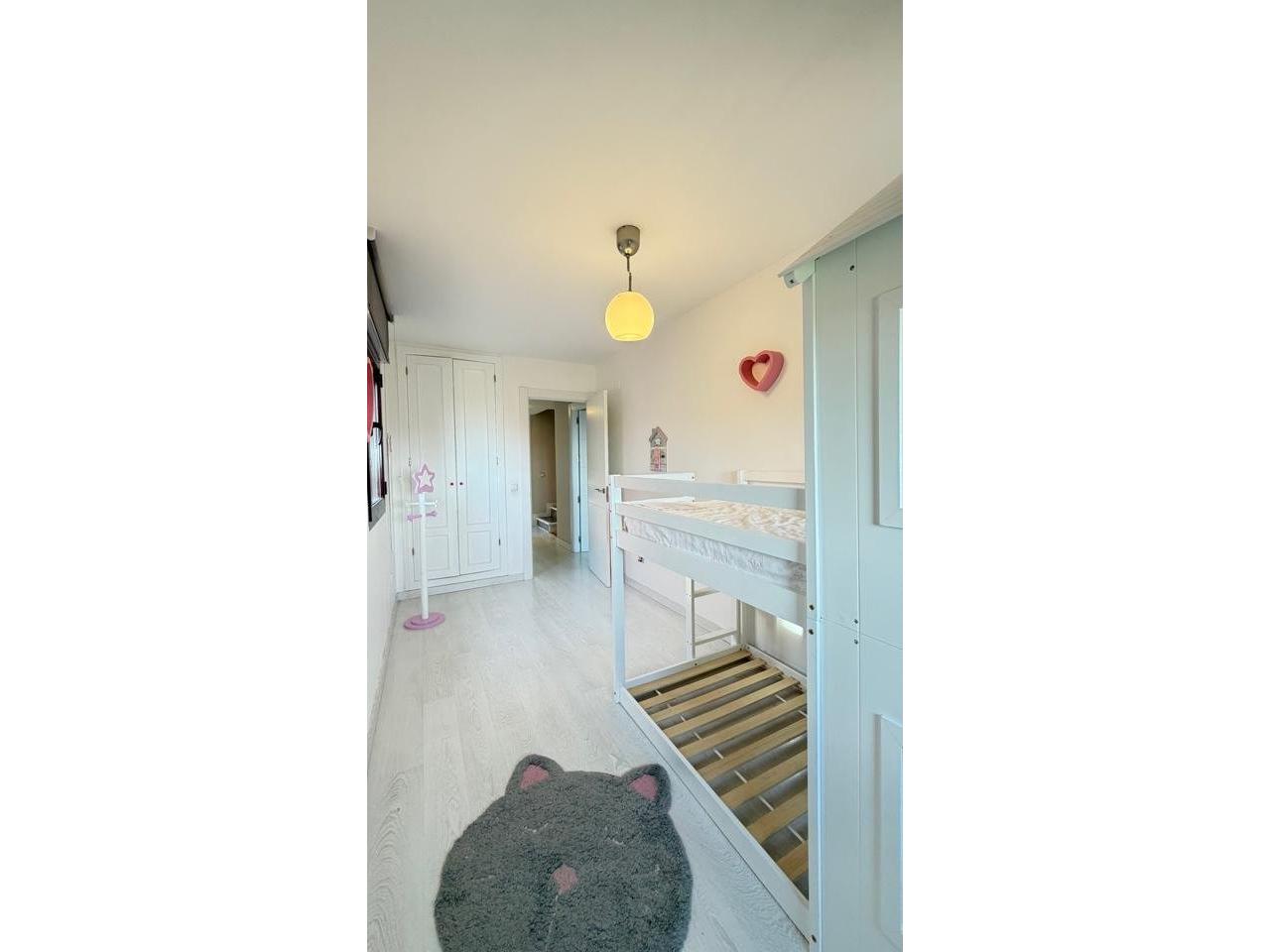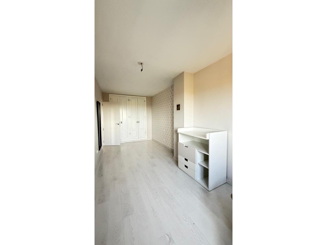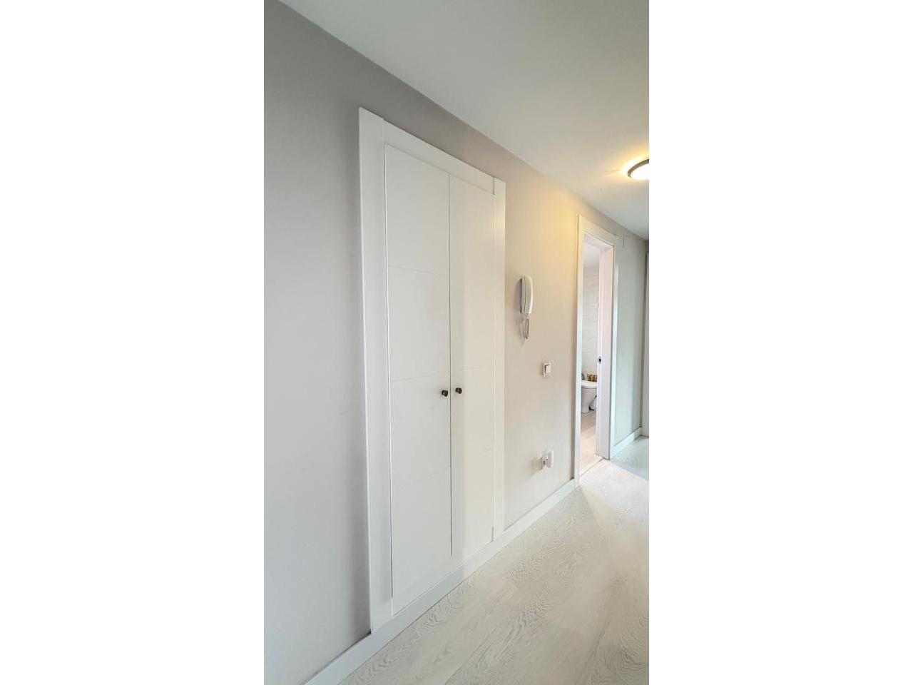 Suelos en tarima blanca y gres, carpintería interior en madera lacada blanca, carpintería exterior aluminio y climalit con contraventanas, 8 armarios empotrados.