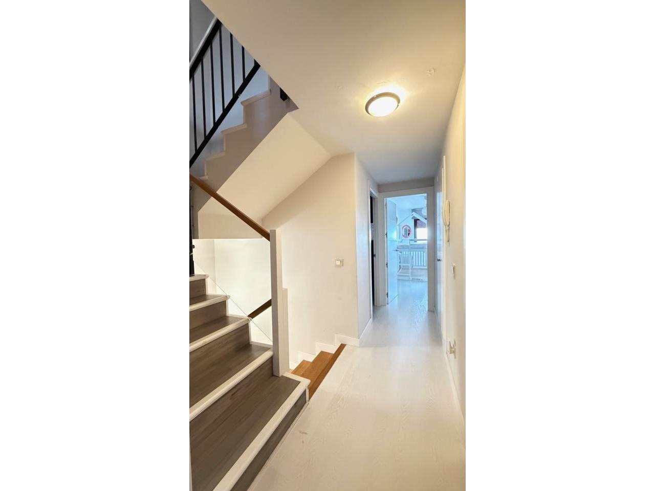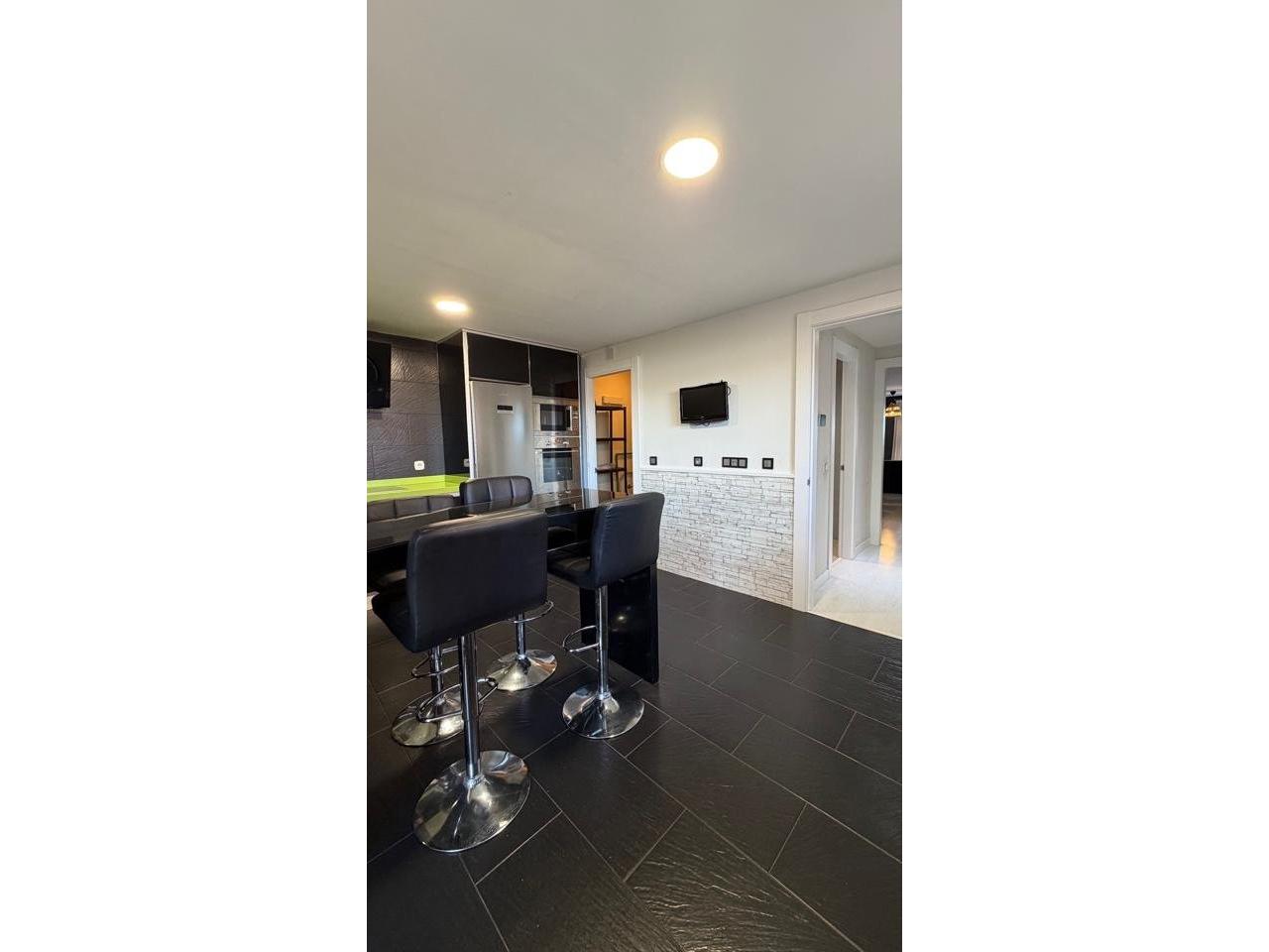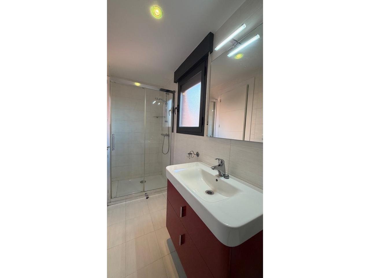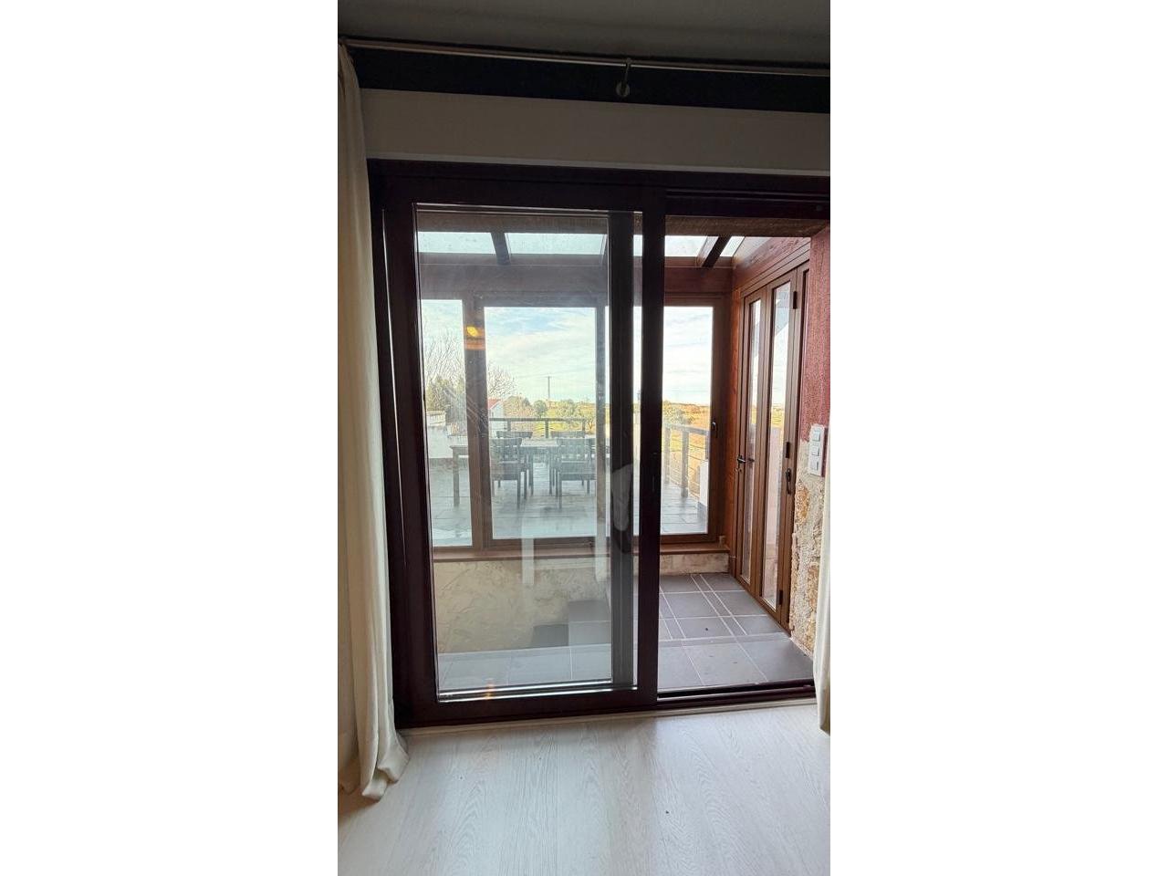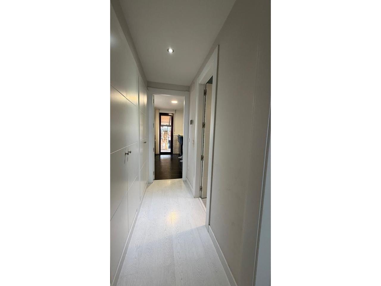 Suelos en tarima blanca y gres, carpintería interior en madera lacada blanca, carpintería exterior aluminio y climalit con contraventanas, 8 armarios empotrados.